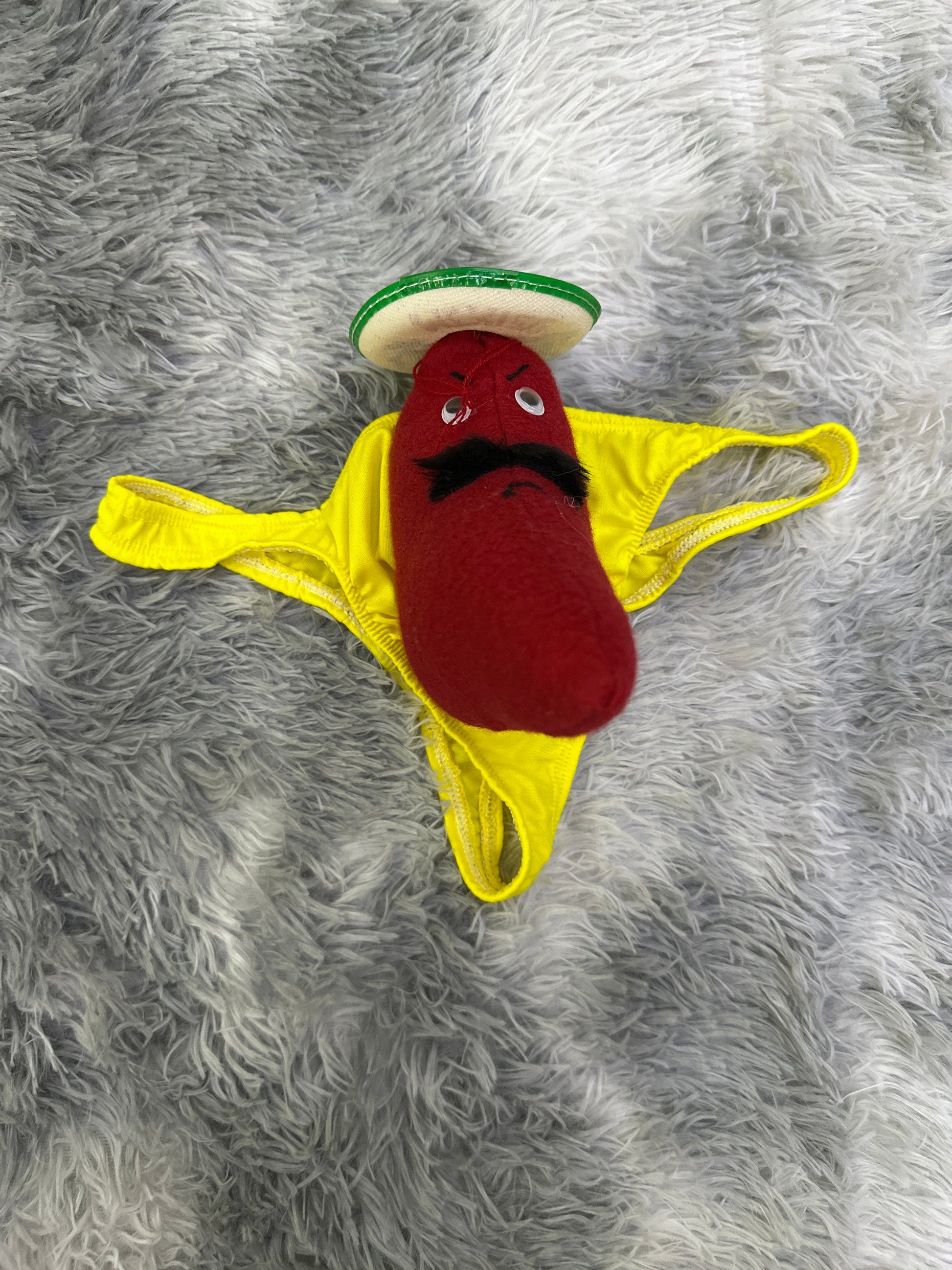 Introducing our funny thongs, where one size really does (kind of) fit all! Crafted with a blend of stretchy, magical mystery fabric, this thong is designed to hug every curve, no matter how curvy or not-so-curvy you are. Perfect for those who believe less is more, or who just enjoy a little unexpected fun in their underwear drawer. Ideal for gift-giving, gag-gifting, or just having a laugh, because nothing says ‘thoughtful’ like a one-size-fits-all thong!”
