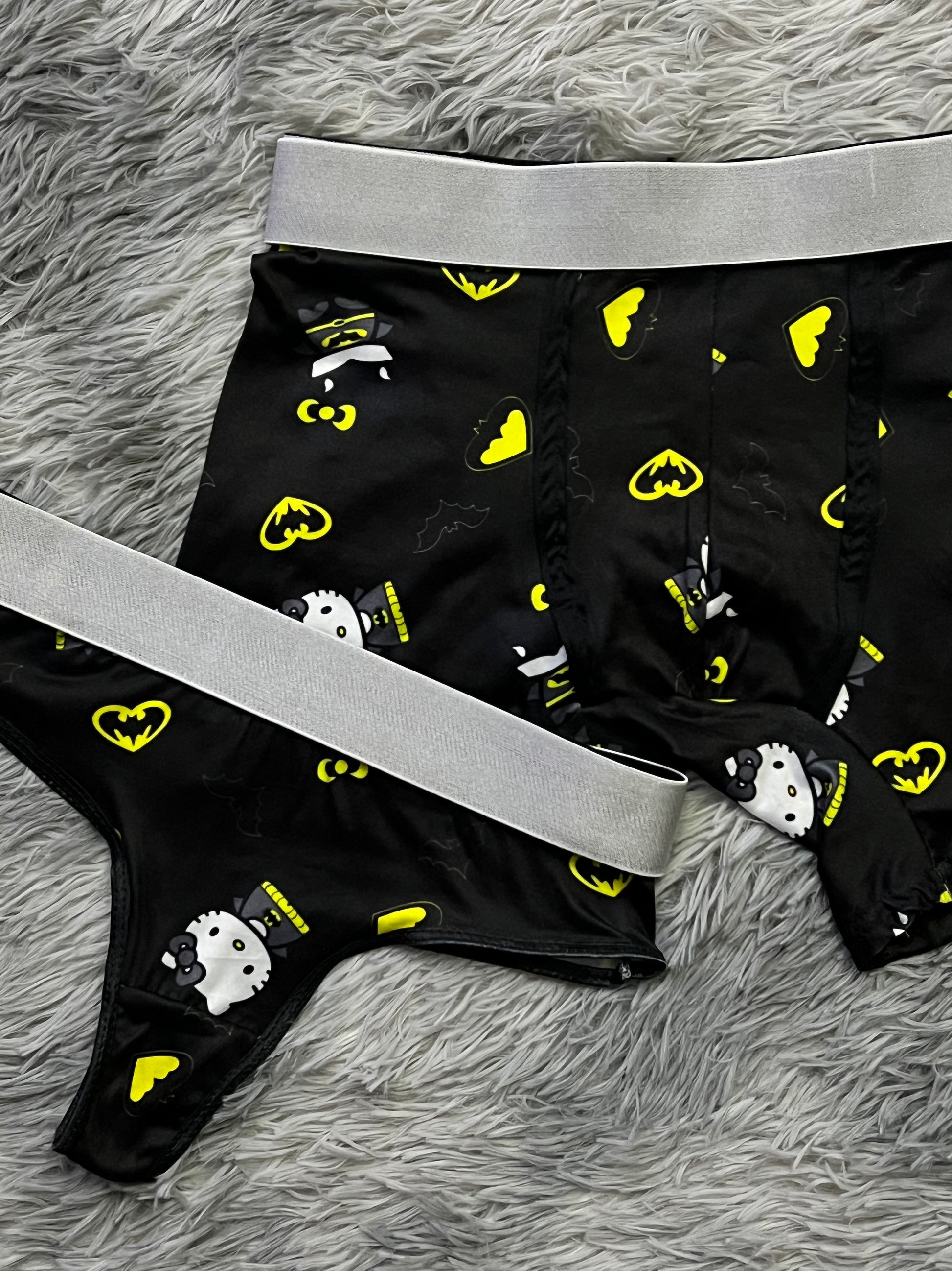 Hello Kitty dressed as Batman black background matching underwear
