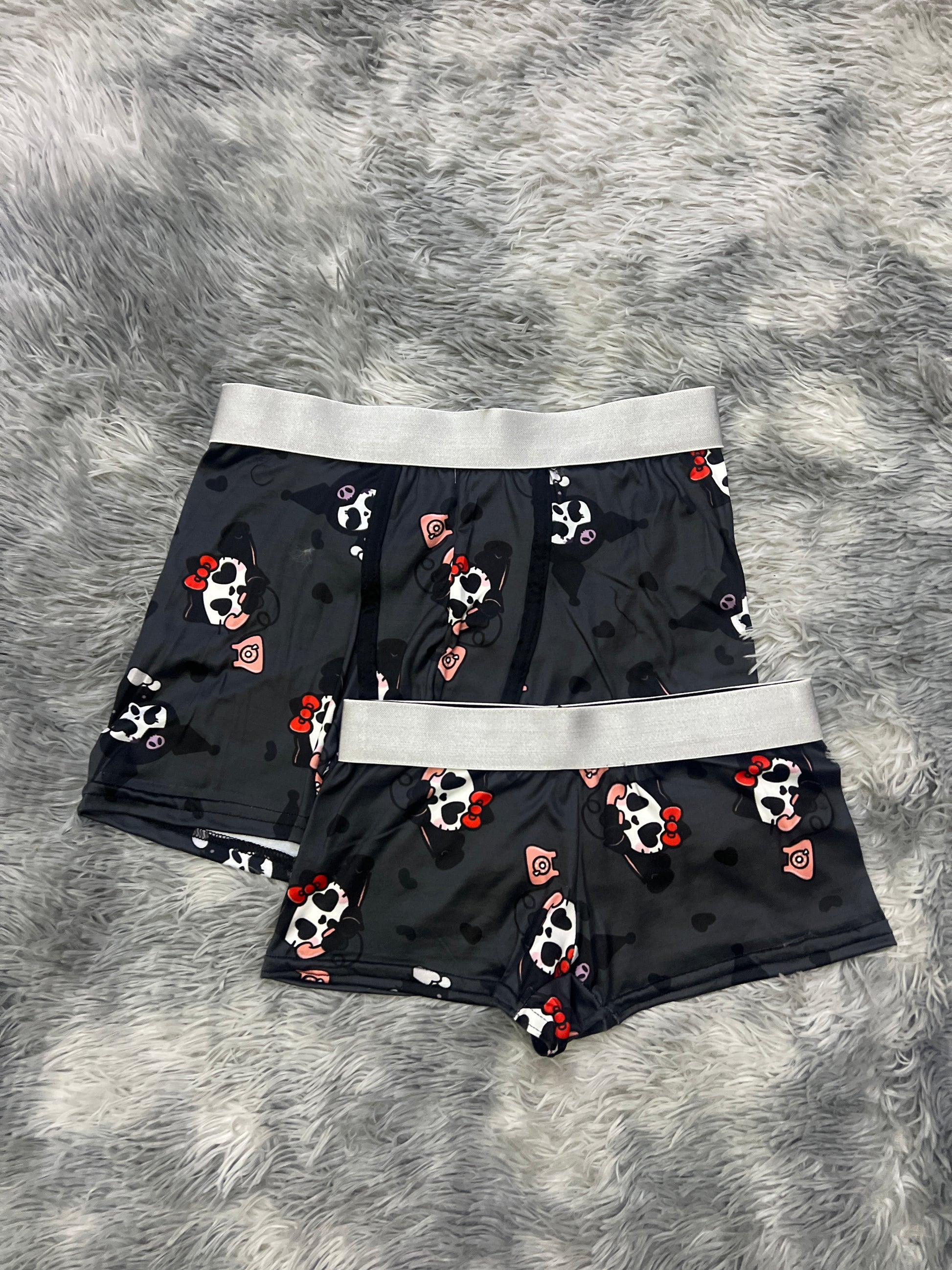 Kitty And Kuromi heart eyes dressed in screem gray background matching couples boxer underwear Halloween