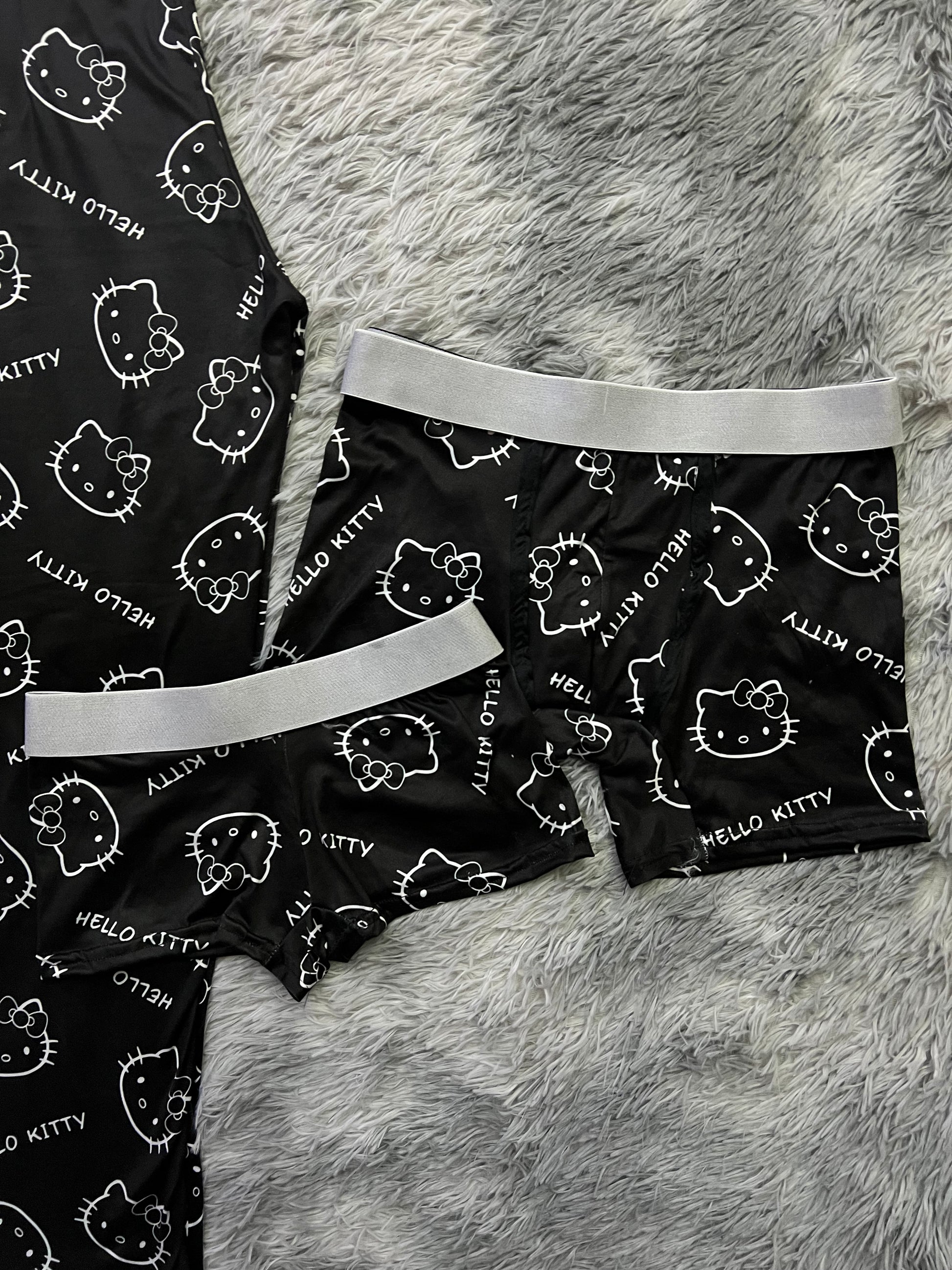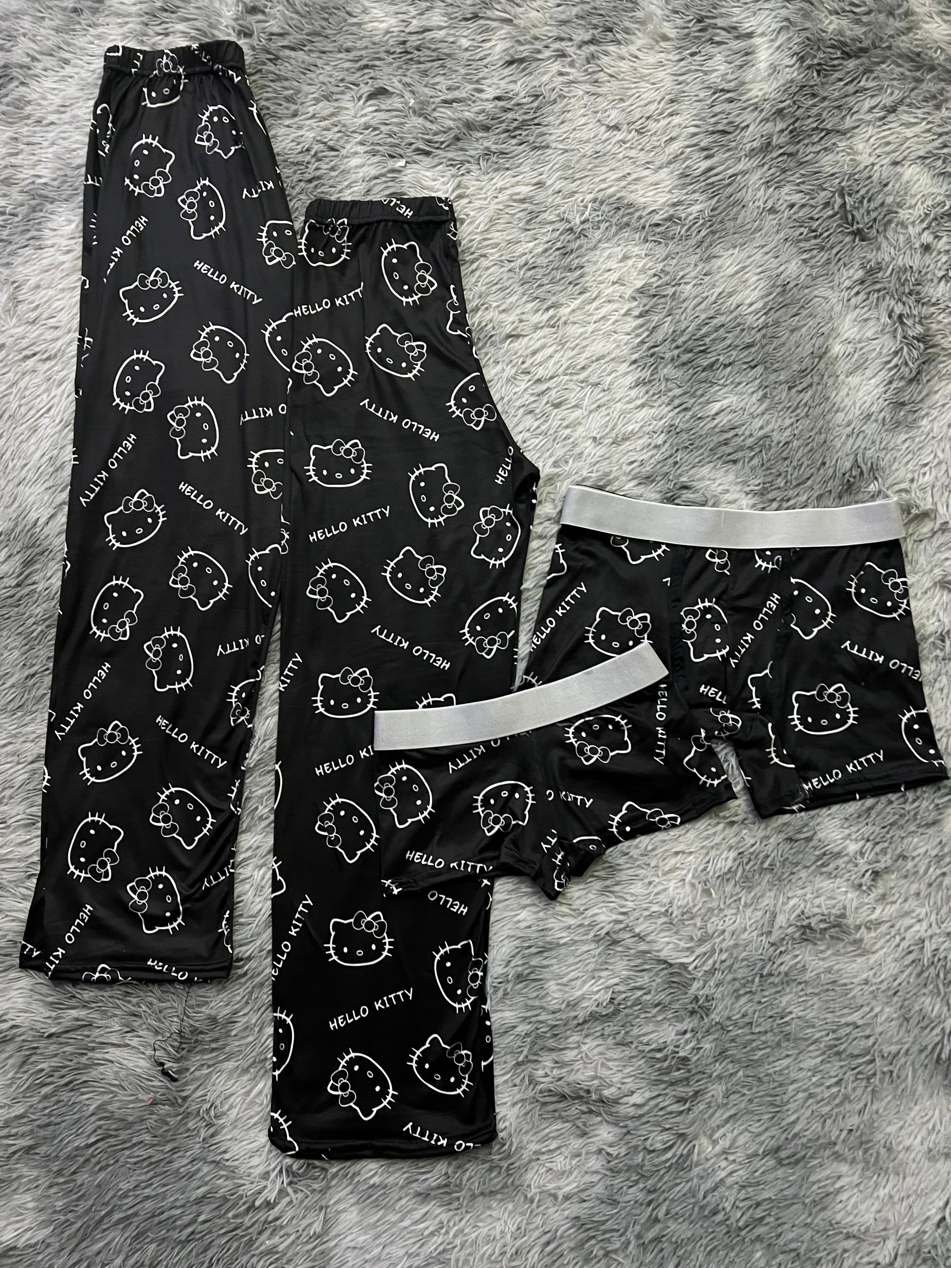 Kitty faces silhouette and letters black background 5 pcs pajama duo