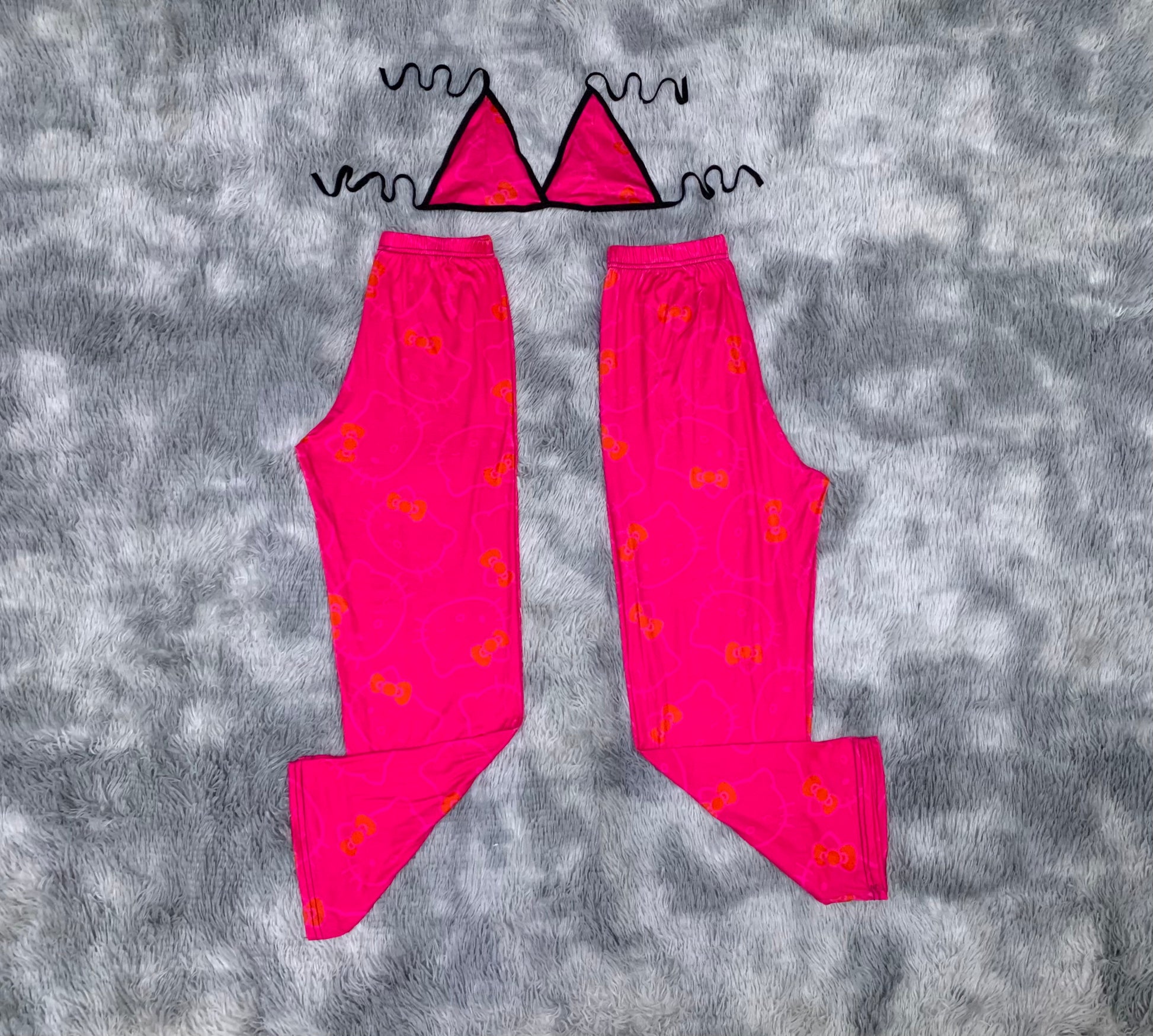 Kitty faces silhouette pink Plush pajama duo