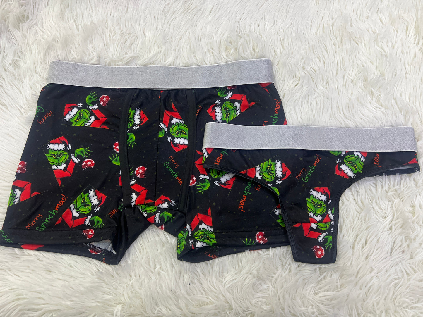 Merry Grinchmas black matching couples underwear christmas